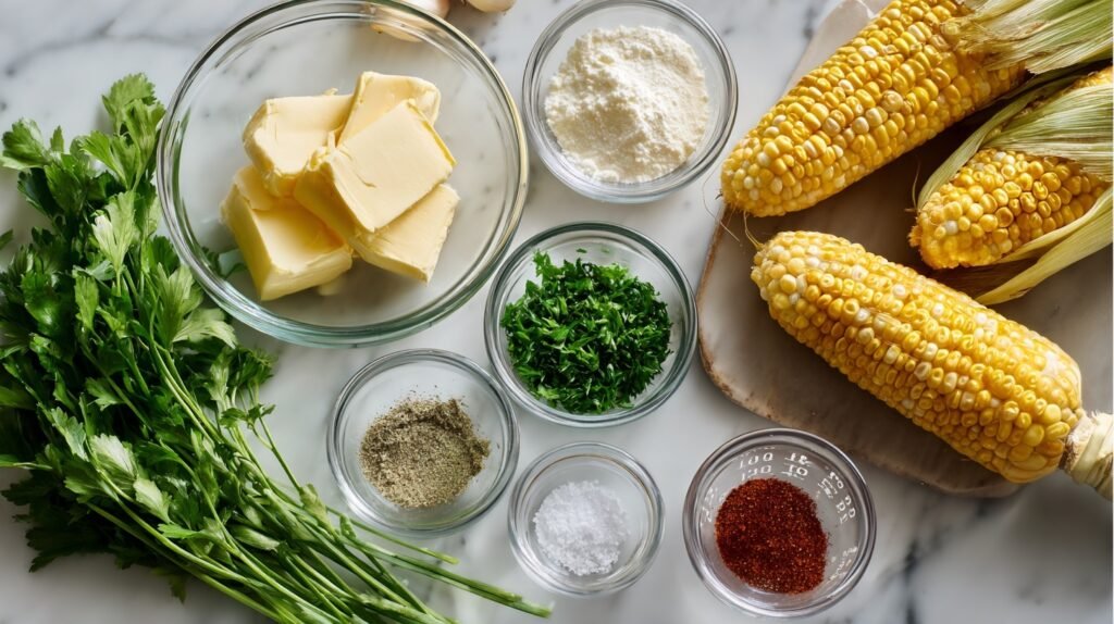 These ingredients harmonize brilliantly: sweet, fresh corn provides a juicy canvas, while softened unsalted butter carries the show with chopped parsley and chives for bright, earthy freshness. Garlic powder and smoked paprika add smoky depth and subtle heat, balanced by salt and pepper—creating a butter that’s aromatic, colorful, and craveably complex without overpowering the corn’s natural sweetness.