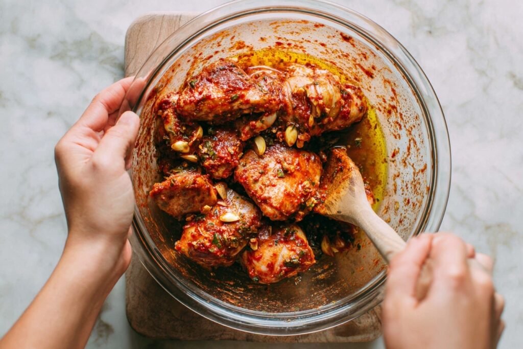 2. Pat 1.5 lbs chicken thighs dry, then toss in the marinade, coating evenly. Let sit 10-15 minutes at room temp for max infusion (or refrigerate up to 4 hours for deeper flavor).