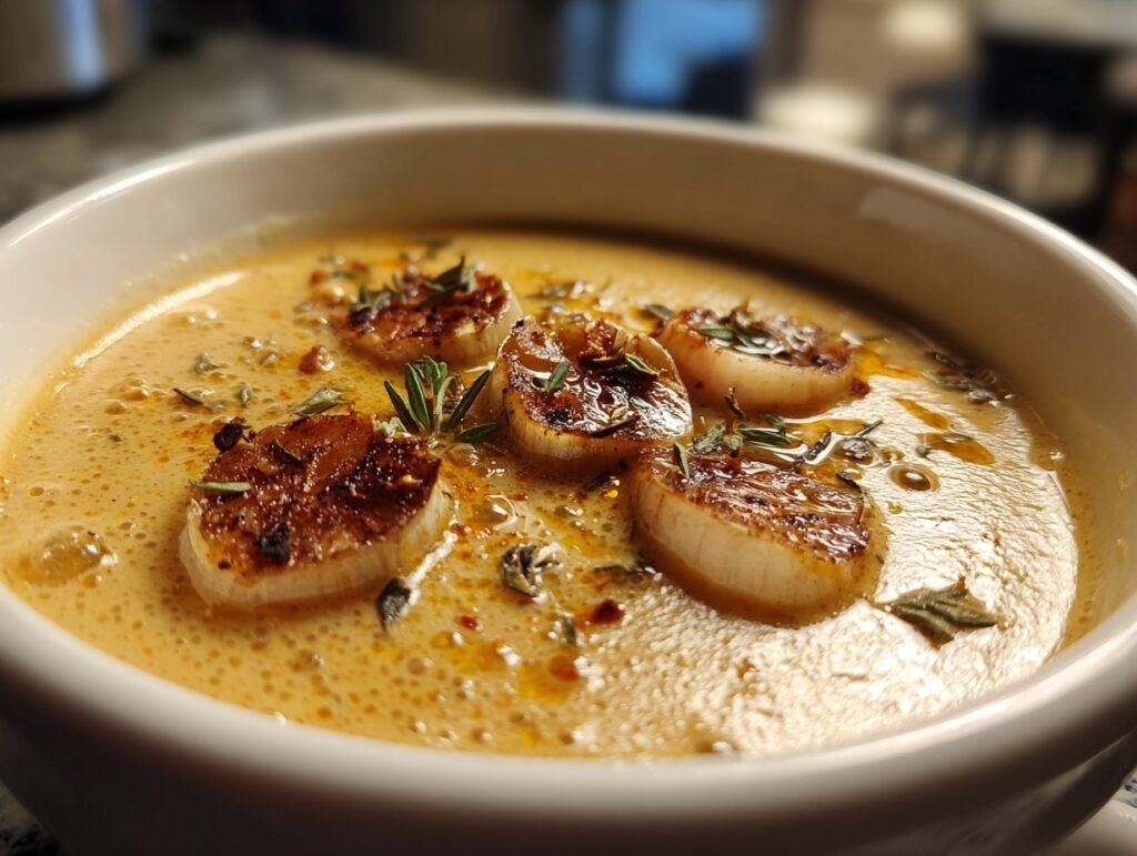 Easy Roasted Garlic Soup is a little bit humble and a lot indulgent: a golden, silky bowl that comforts and dazzles in equal measure. It’s a go-to for cozy nights, elegant starters, and picture-perfect posts that beg to be saved and shared.