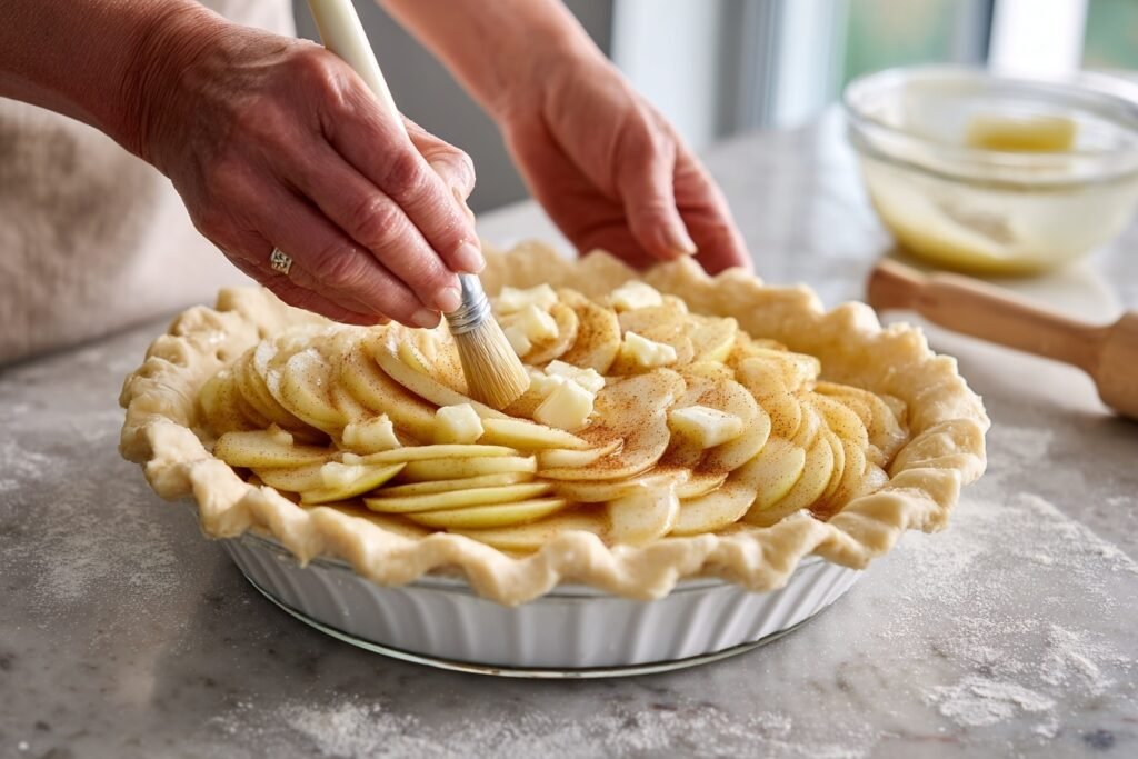 8. Egg wash: Brush entire top with beaten egg for shiny, golden-brown finish. Chill assembled pie 15 minutes to set crust.