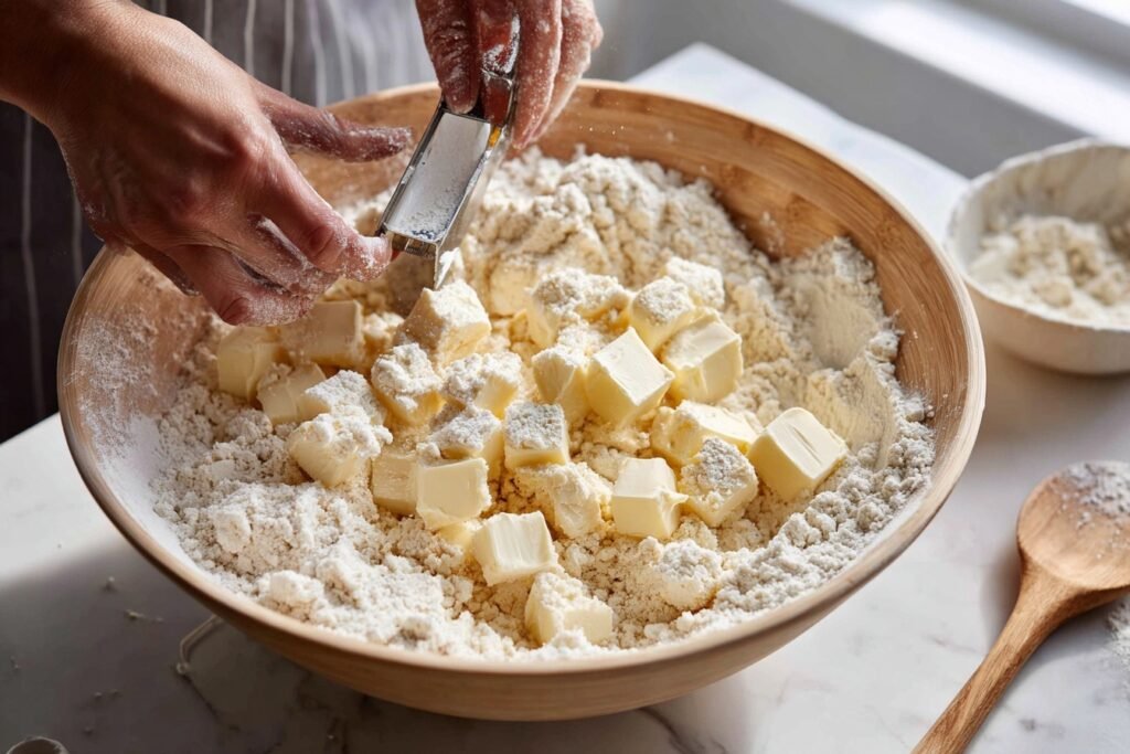3. Cut in butter: Add cold cubed butter to the dry mix. Use a pastry cutter or fingers to work it in until the mixture resembles coarse crumbs with pea-sized butter pieces—key for flaky shortcakes.