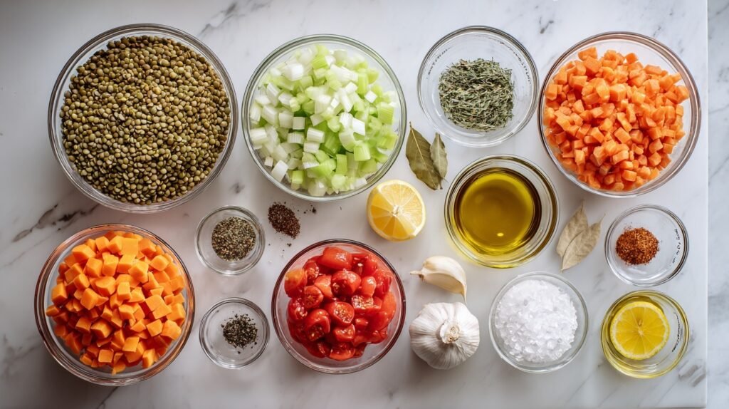 Every ingredient here plays a clear role: aromatics build depth, cumin and thyme bring warmth, tomatoes add acidity and color, and lemon brightens the finish. Olive oil unites flavors and gives a glossy sheen, while the vegetable broth provides a savory base that lets the lentils shine.